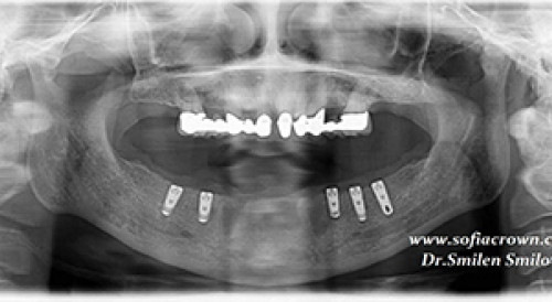 Поставени са пет импланта в долна челюст. Предстоящо имплантиране